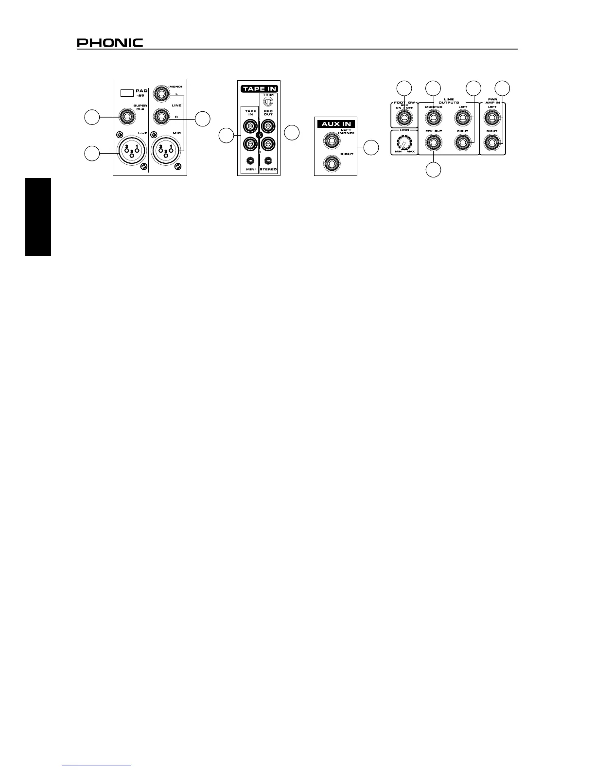 entradas, Phonic ha incorporado un mini jack estéreo para agregar