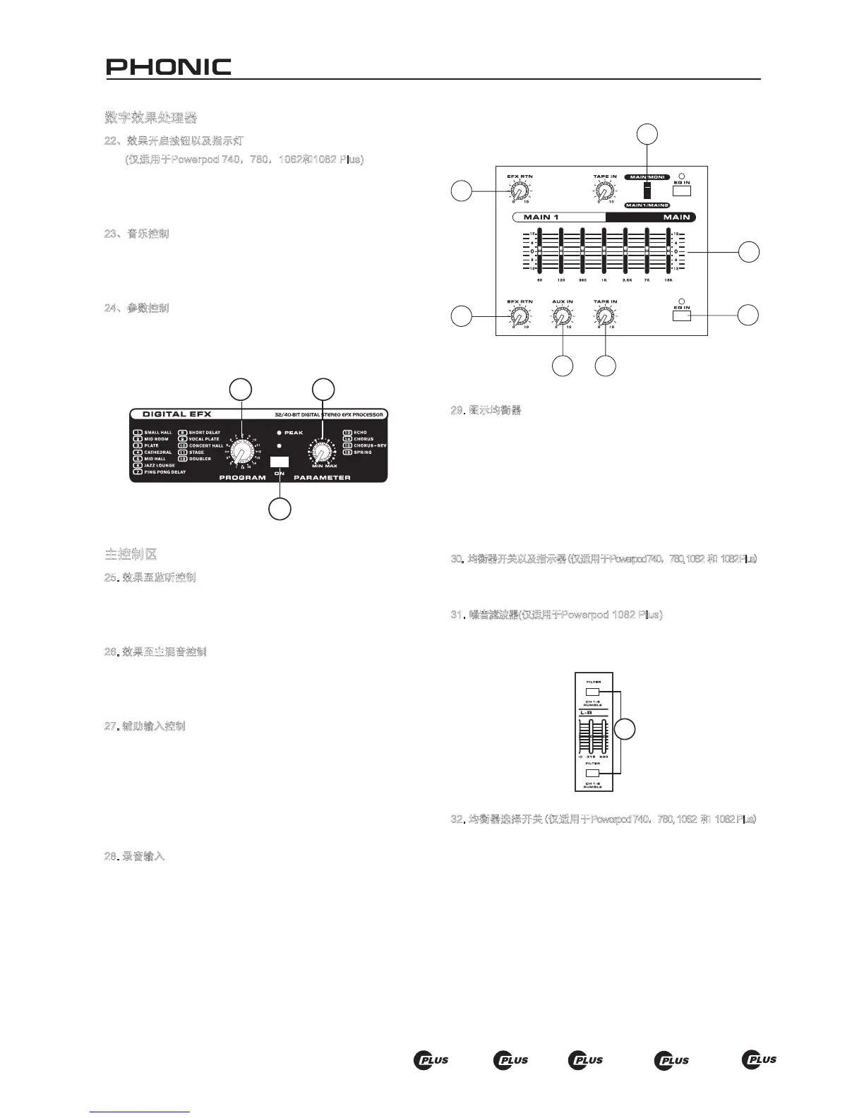 调节。Powerpod 740,780和1062 Plus均含有双图示均衡器,