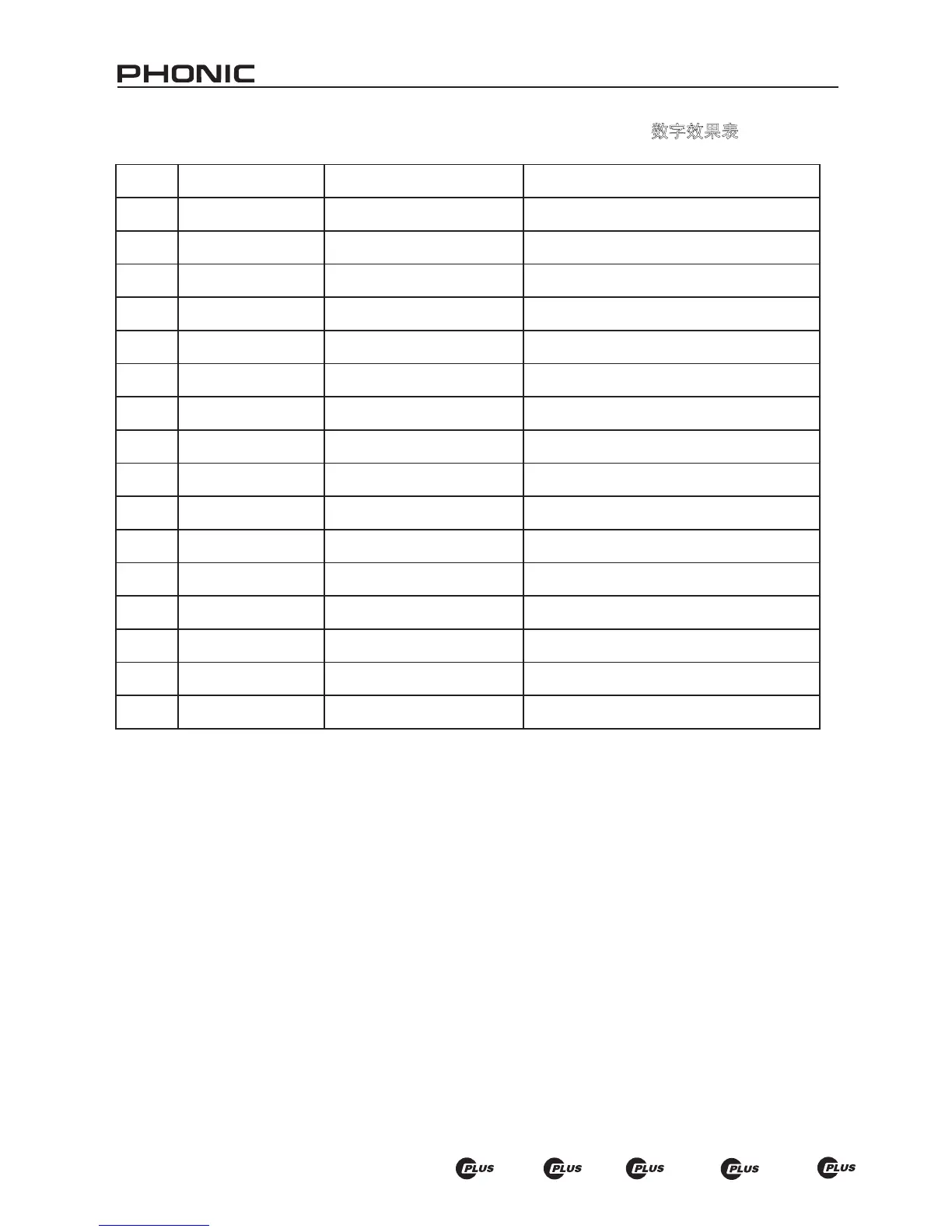DIGITAL EFFECTS TABLE TABLA DE EFECTOS DIGITALES 数字效果表