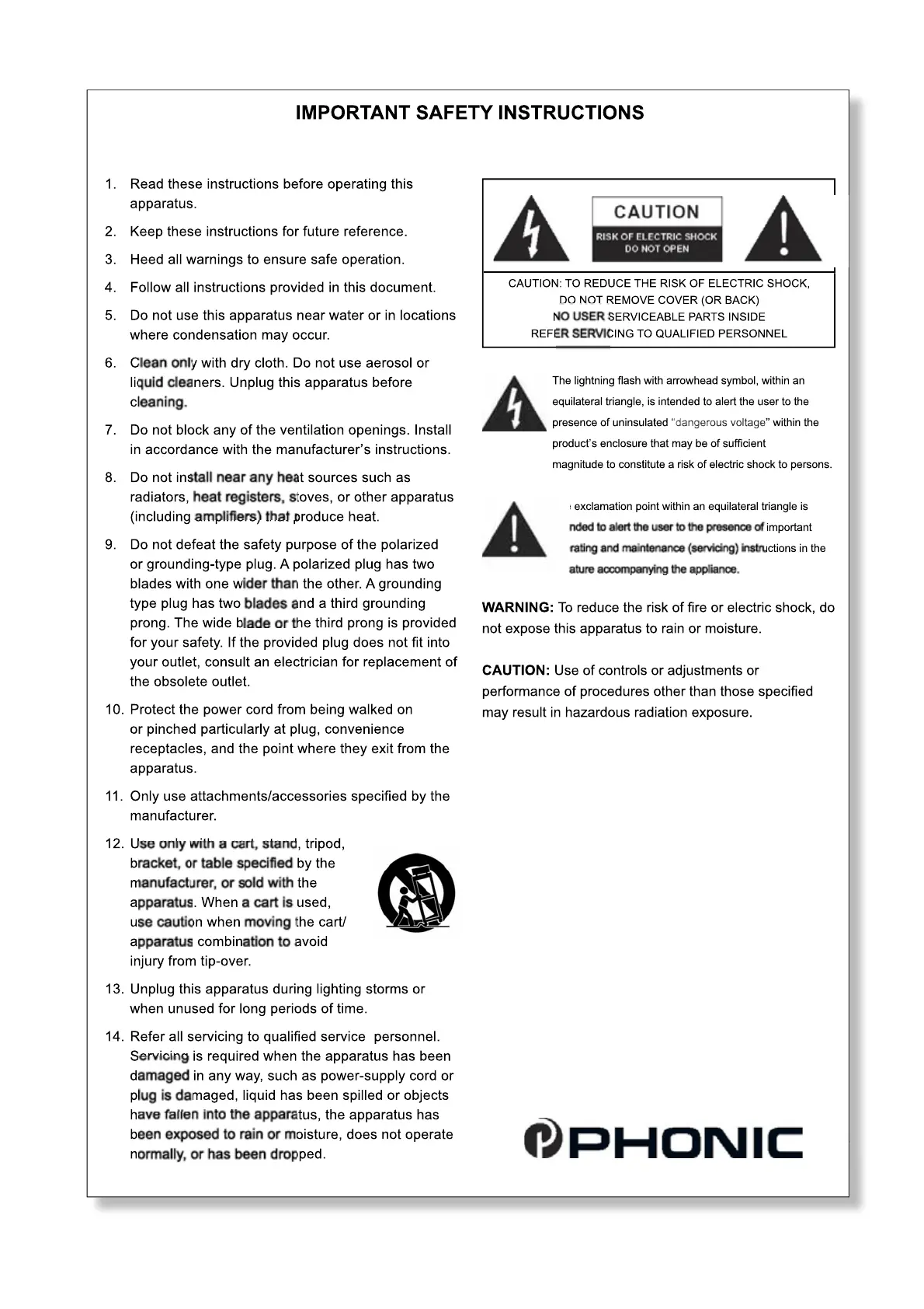 Phonic POWERPOD 620 - Important Safety Instructions; General Safety Precautions