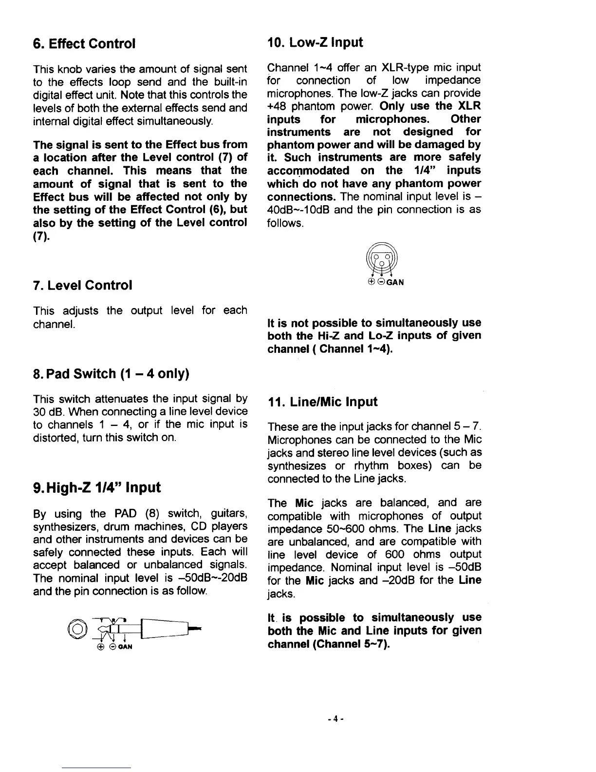 Phonic Powerpod 7 - Effect Control; Level Control; Pad Switch (Channels 1-4); High-Z 1;4 Input