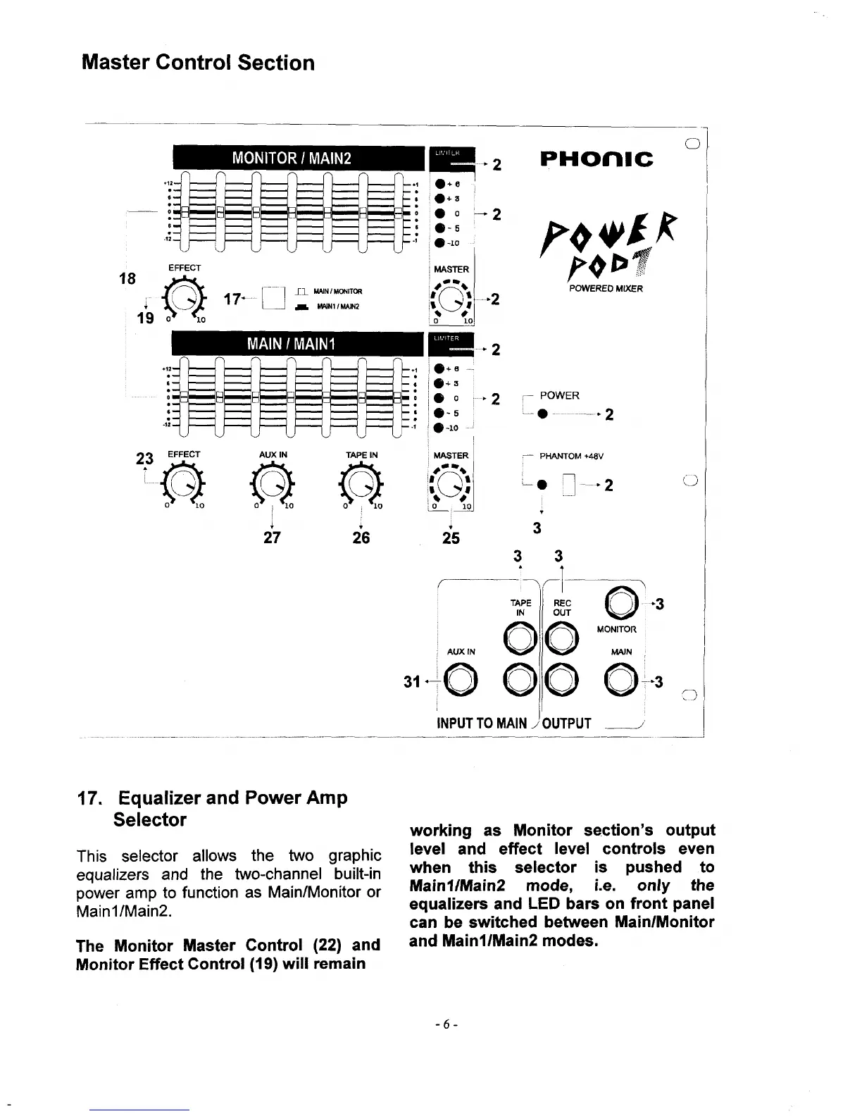 Phonic Powerpod 7 - Master Control Section; Equalizer and Power Amp Selector