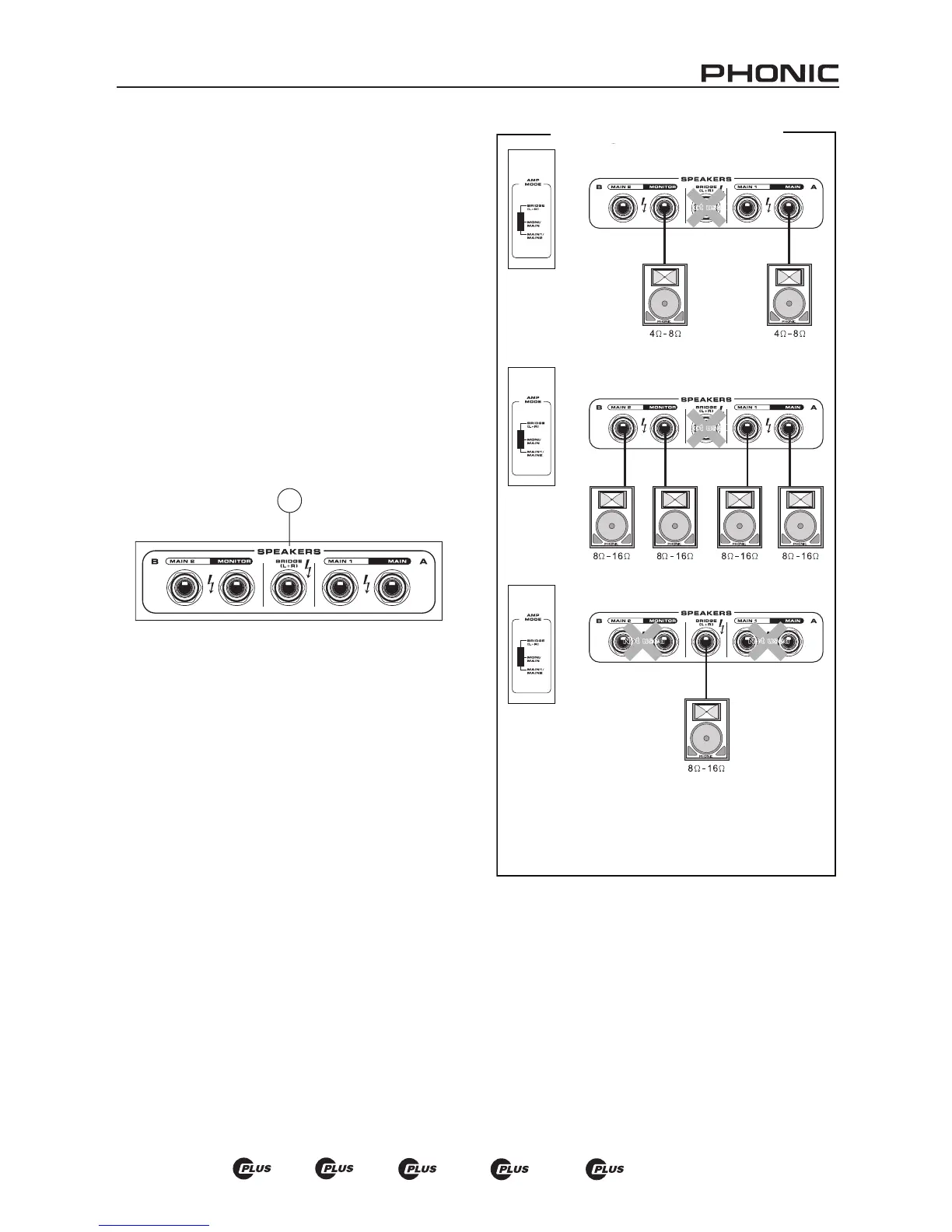 de Altavoz etiquetada como “(L+R) Bridge” solo para conectar un