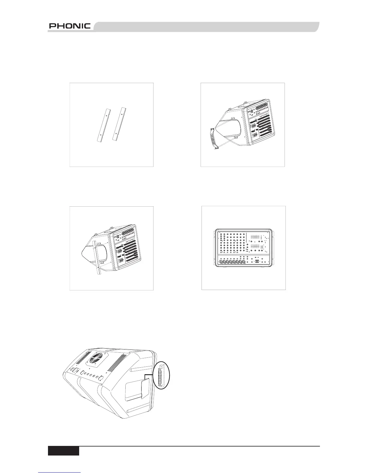 After removing the Powerpod Molded Powered Mixers' handles, attach the rack mounting kit parallel to either side of
