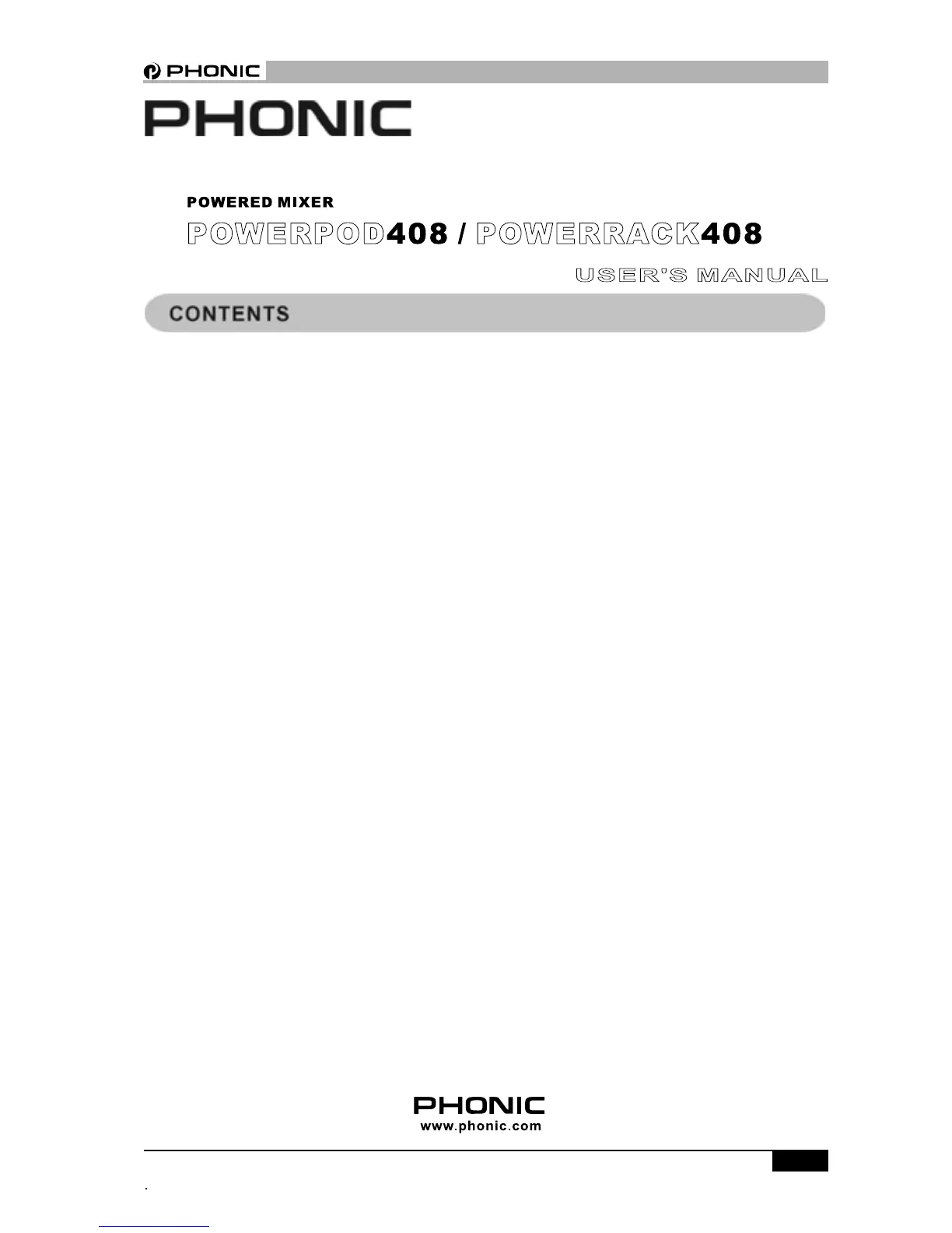 PHONIC CORPORATION Page 3POWERPOD408 / POWERRACK408 USER’S MANUAL