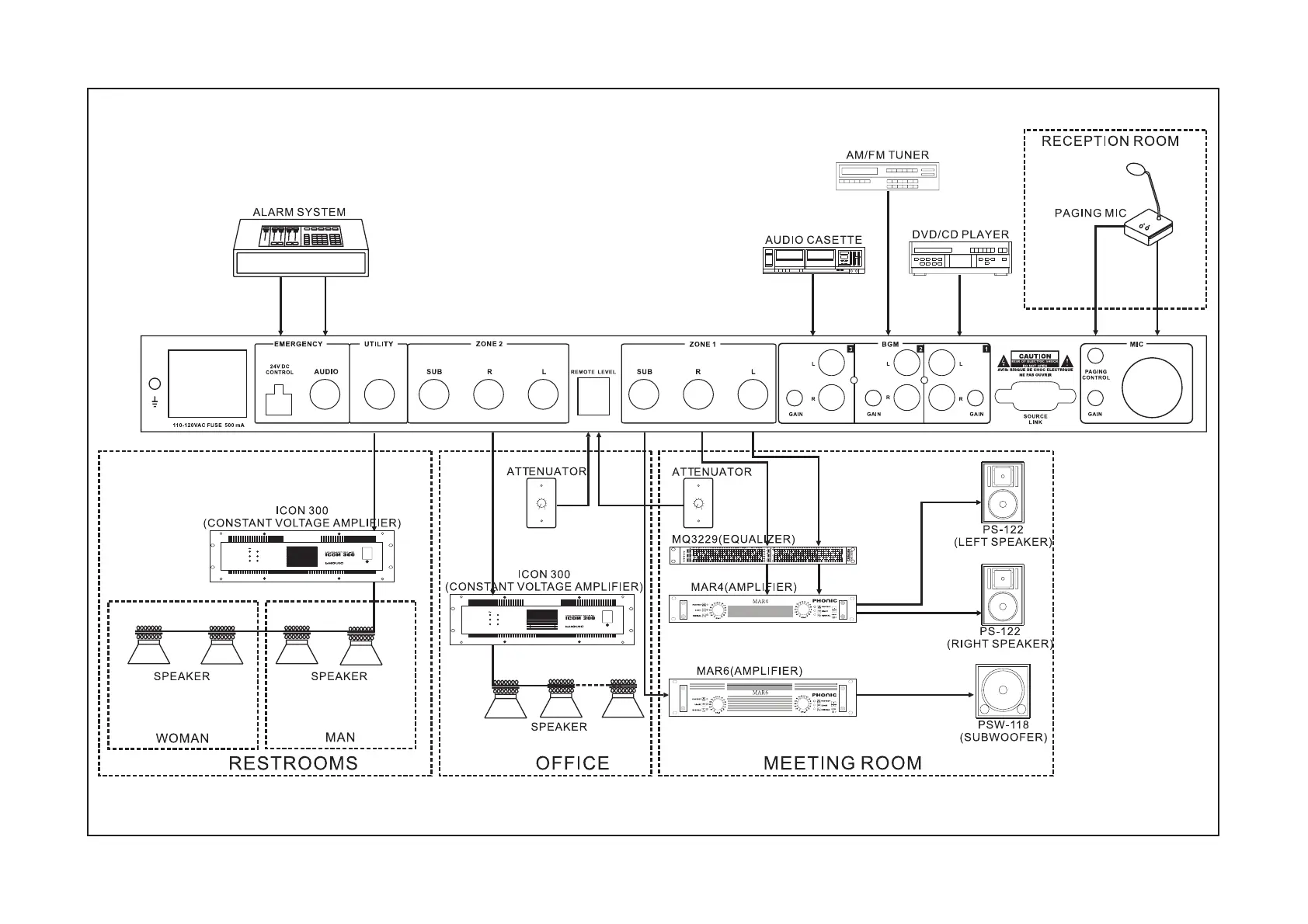 Phonic PX2300 - 2.3.1 Application 1: Office