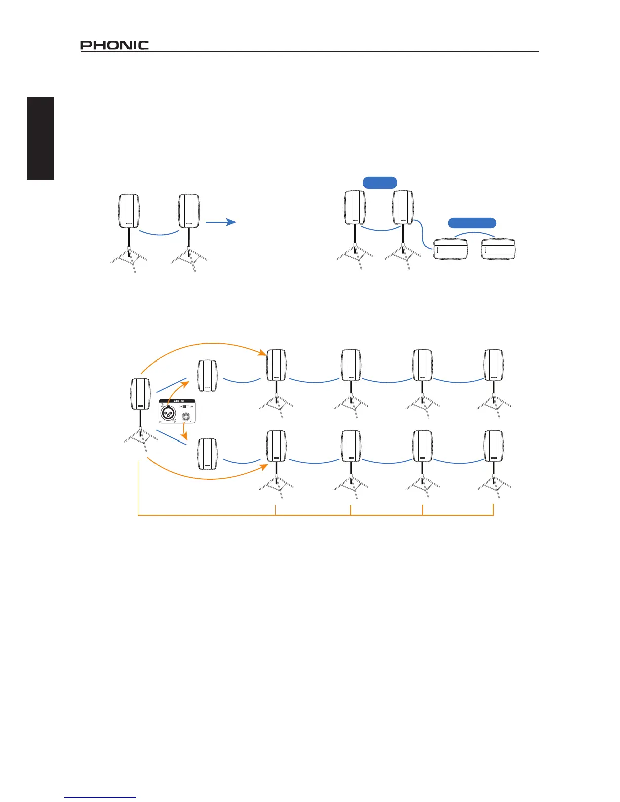 sistemas de audio de expansión activa. Los altavoces pueden ser fácilmente enlazados con los conectores de salida de