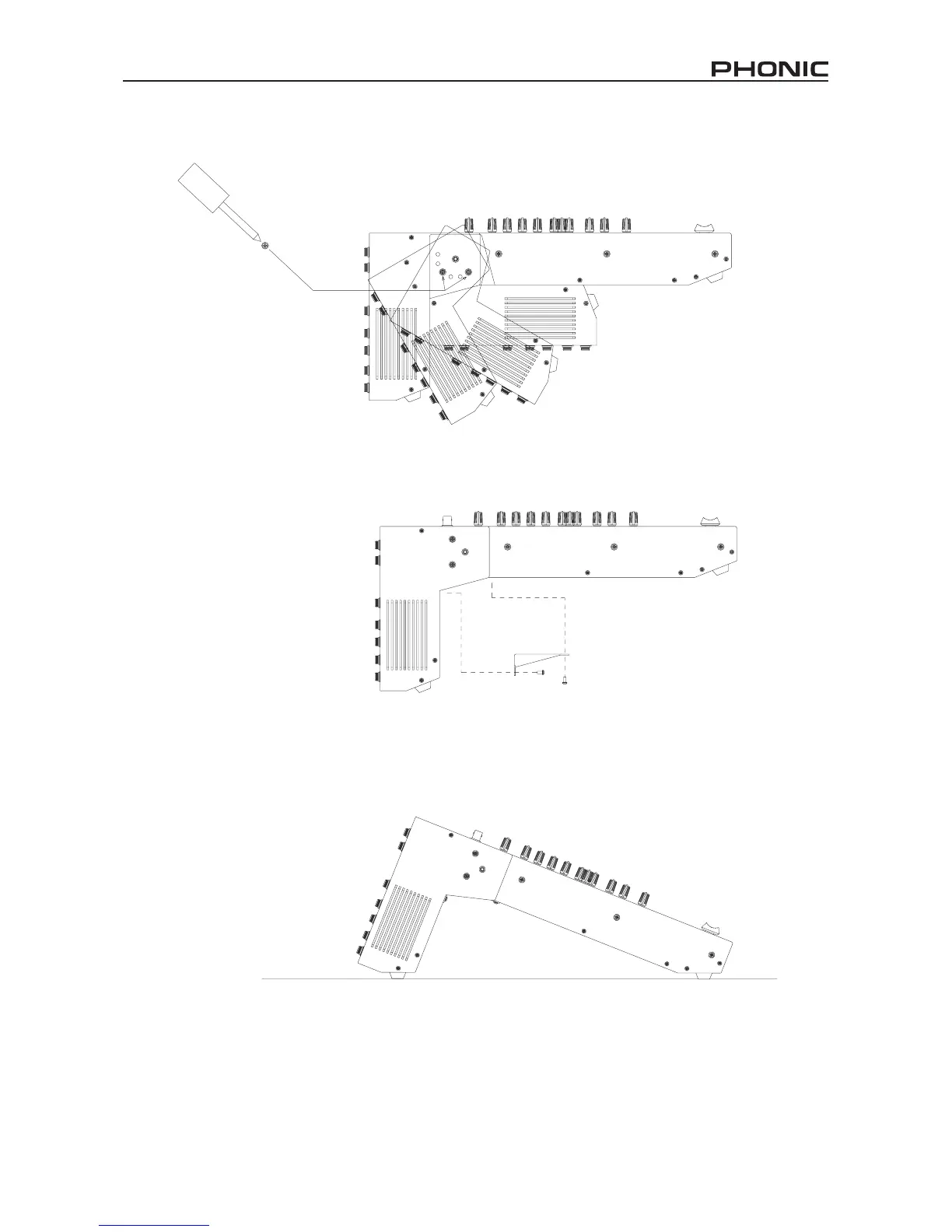 Cuando el panel de conexión se asiente perpendicularmente a la base de la mixer, el diseño de la Sonic Station 16 permitiará a los