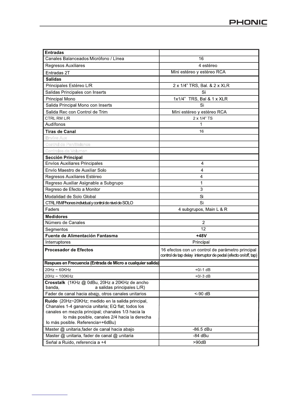 Phonic Sonic Station 16 - Especificaciones
