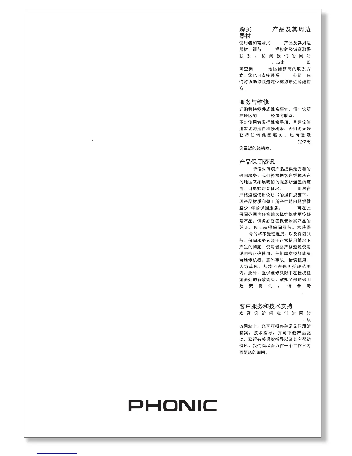 the user’s manual. Phonic, at its option,