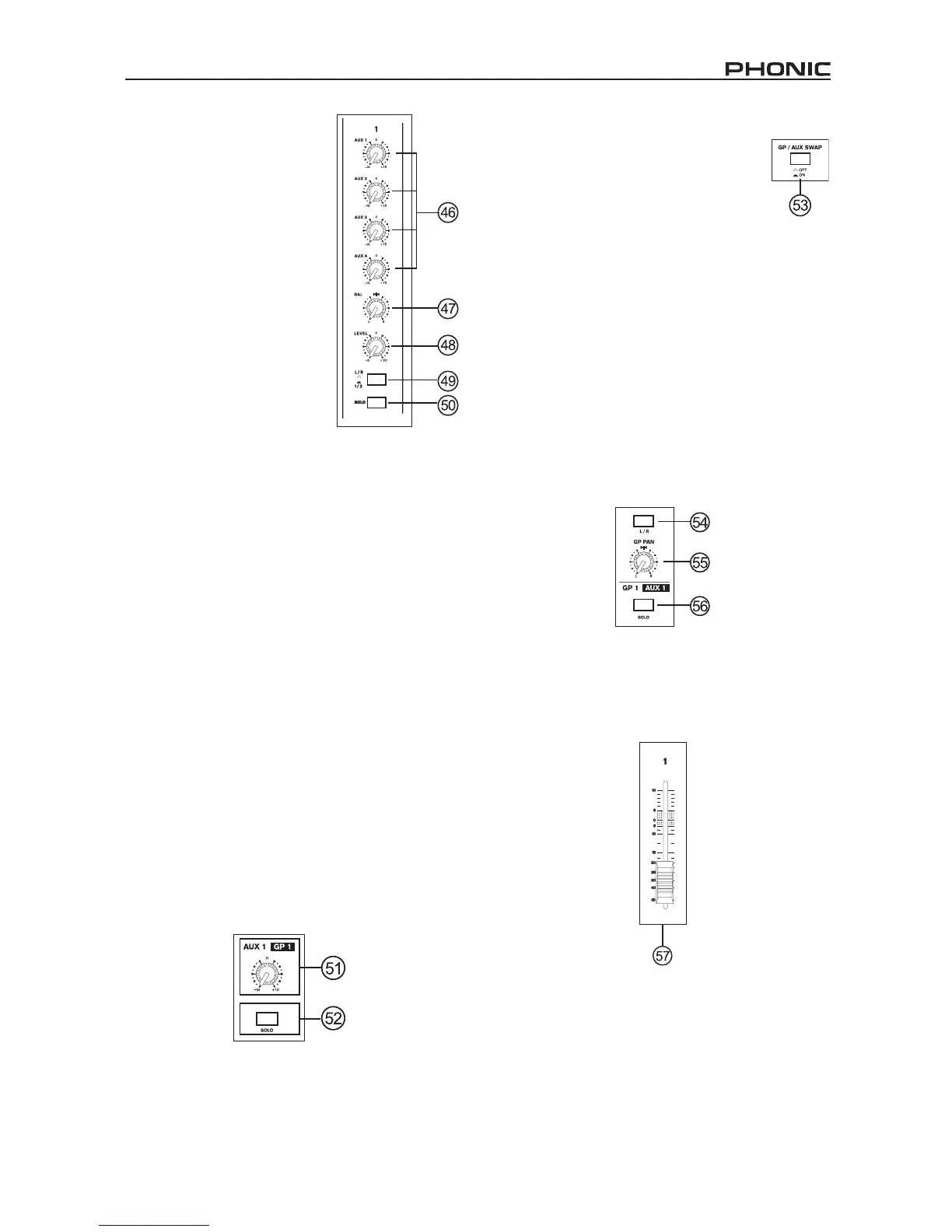 These rotary controls adjust the nal level of the AUX 1, 2,