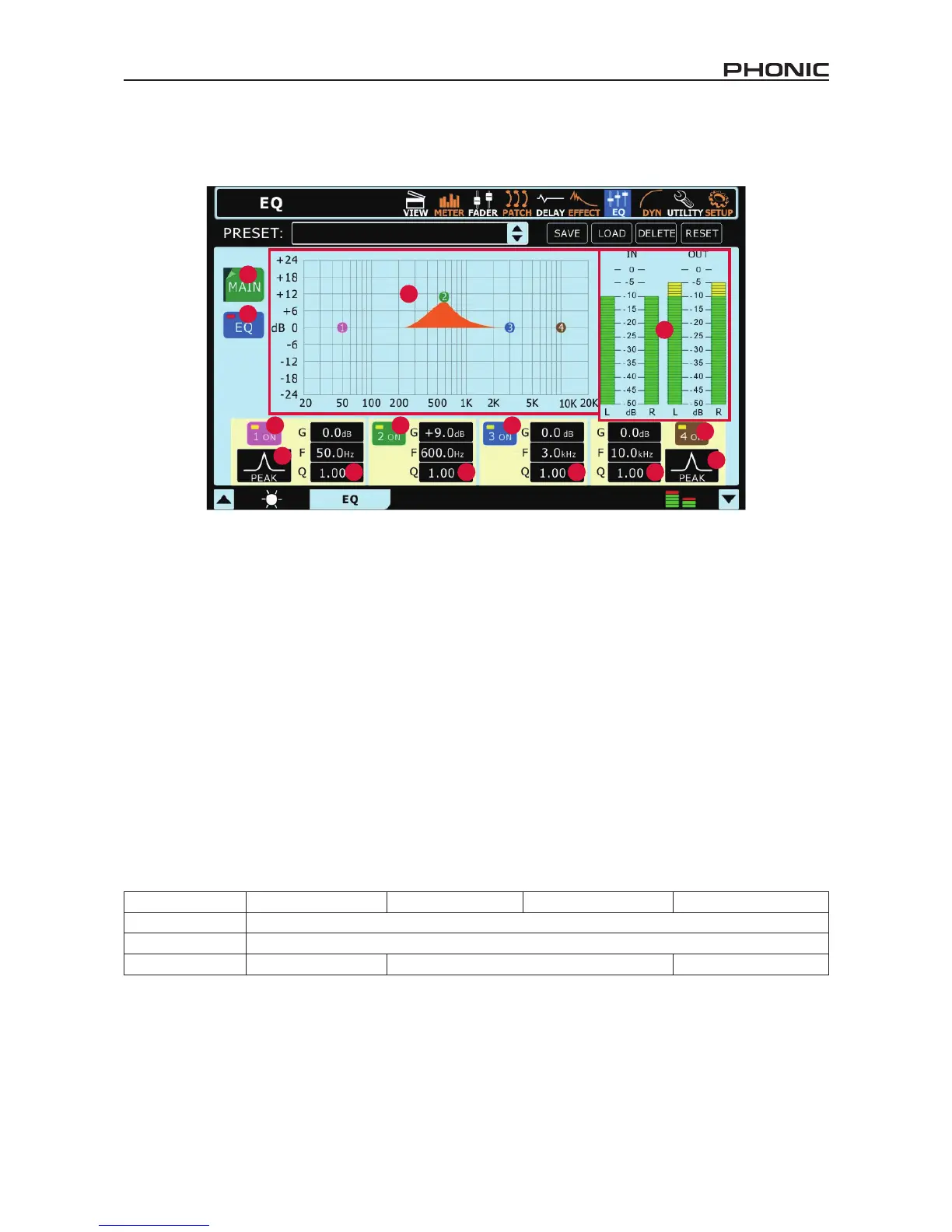 adjust the frequency and boost/cut properties of that particular band. The touch screen can be used to help adjust the bands.