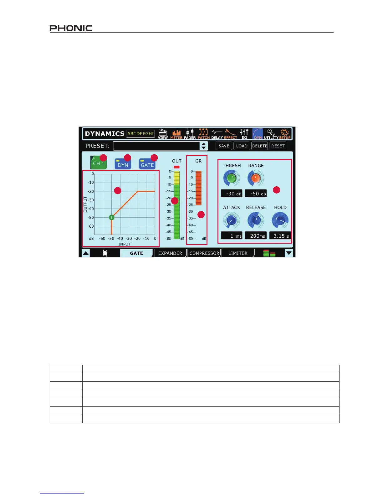 Range On the gate function, the range parameter allows users to select the level (in decibels) by which the signal will attenuate.