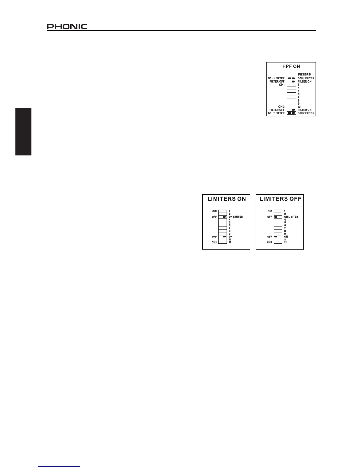 número 10 para canal 2) le permite activar el circuito de limitador