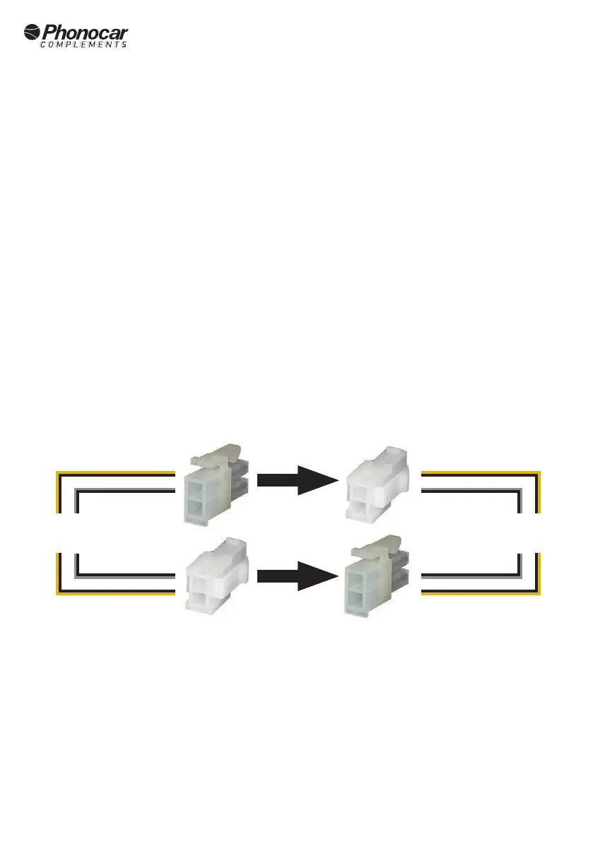 se indica en el siguiente esquema y realizar las conexiones necesarias en la instalación del vehículo. Los esquemas, con las indicaciones son