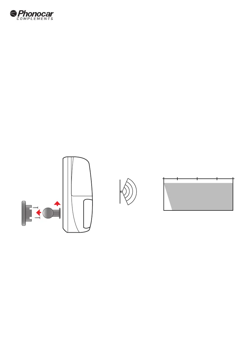 N.B.: Il sensore PIR è più sensibile al movimento laterale (attraversamento) rispetto al movimento longitudinale (avvicinamento). Per un