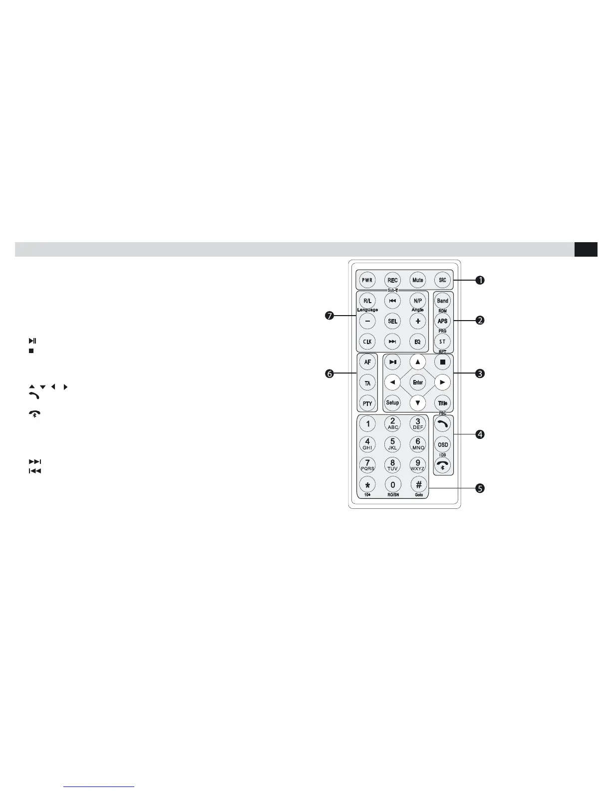(MUTE): Enlève l’audio (SRC): Sélectionne RADIO,DISC,SD,USB,BACK