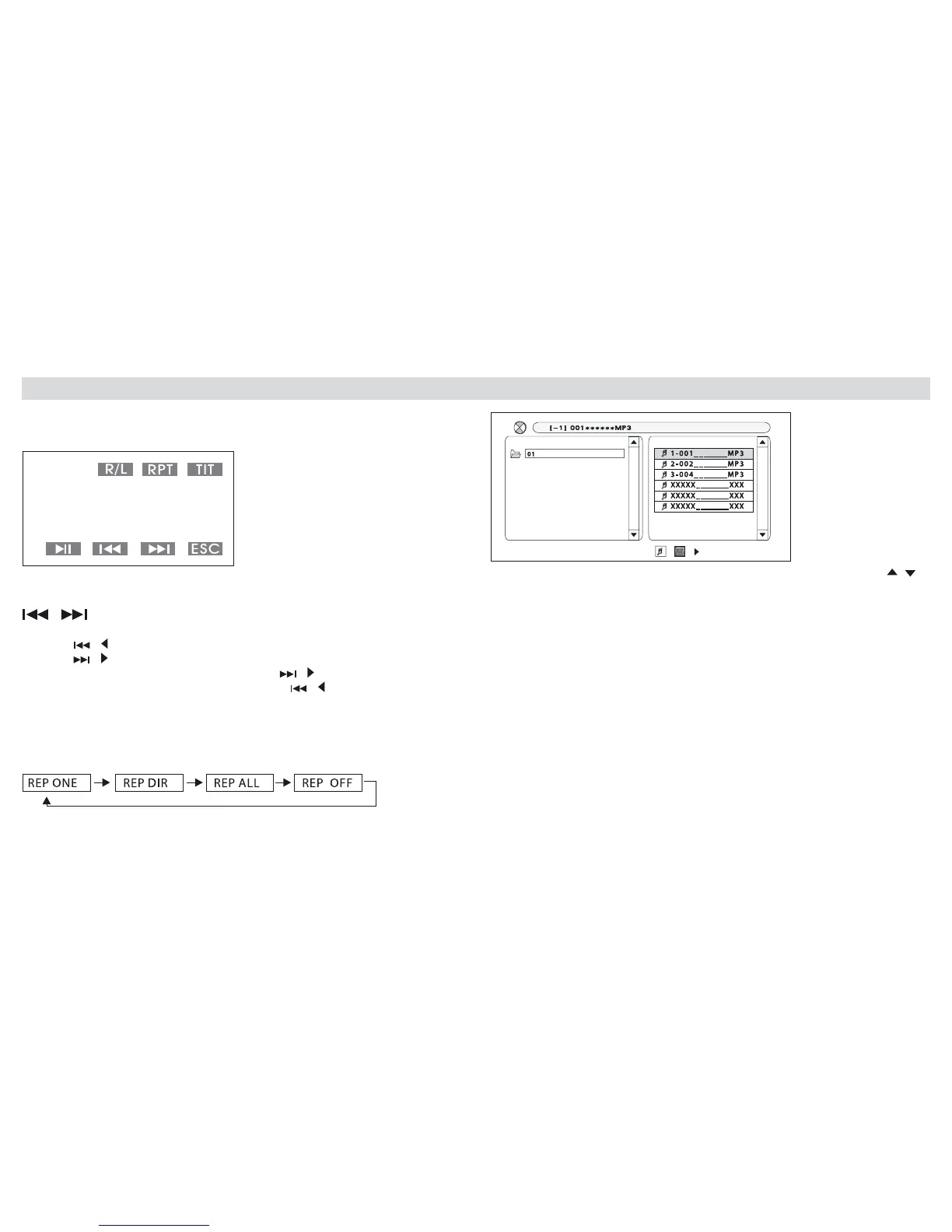 Répétition: appuyer sur RPT sur l’écran ou sur la télécommande pour