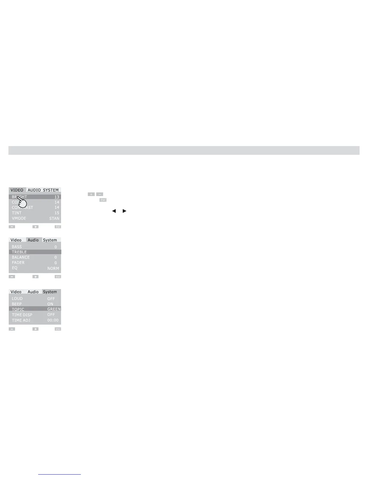 • AUDIO SETUP: BASS-TREBLE-BALANCE-FADER "RANGE" -7 E +7
