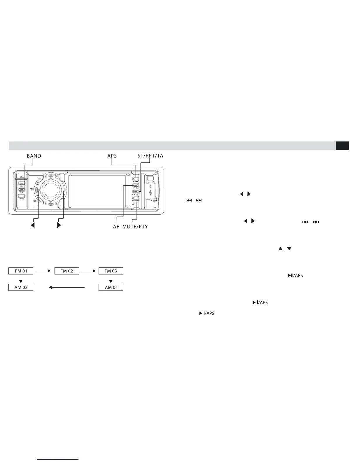 Presionar la tecla BAND para selecionar entre3 bandas FM y 2 AM (FM1-