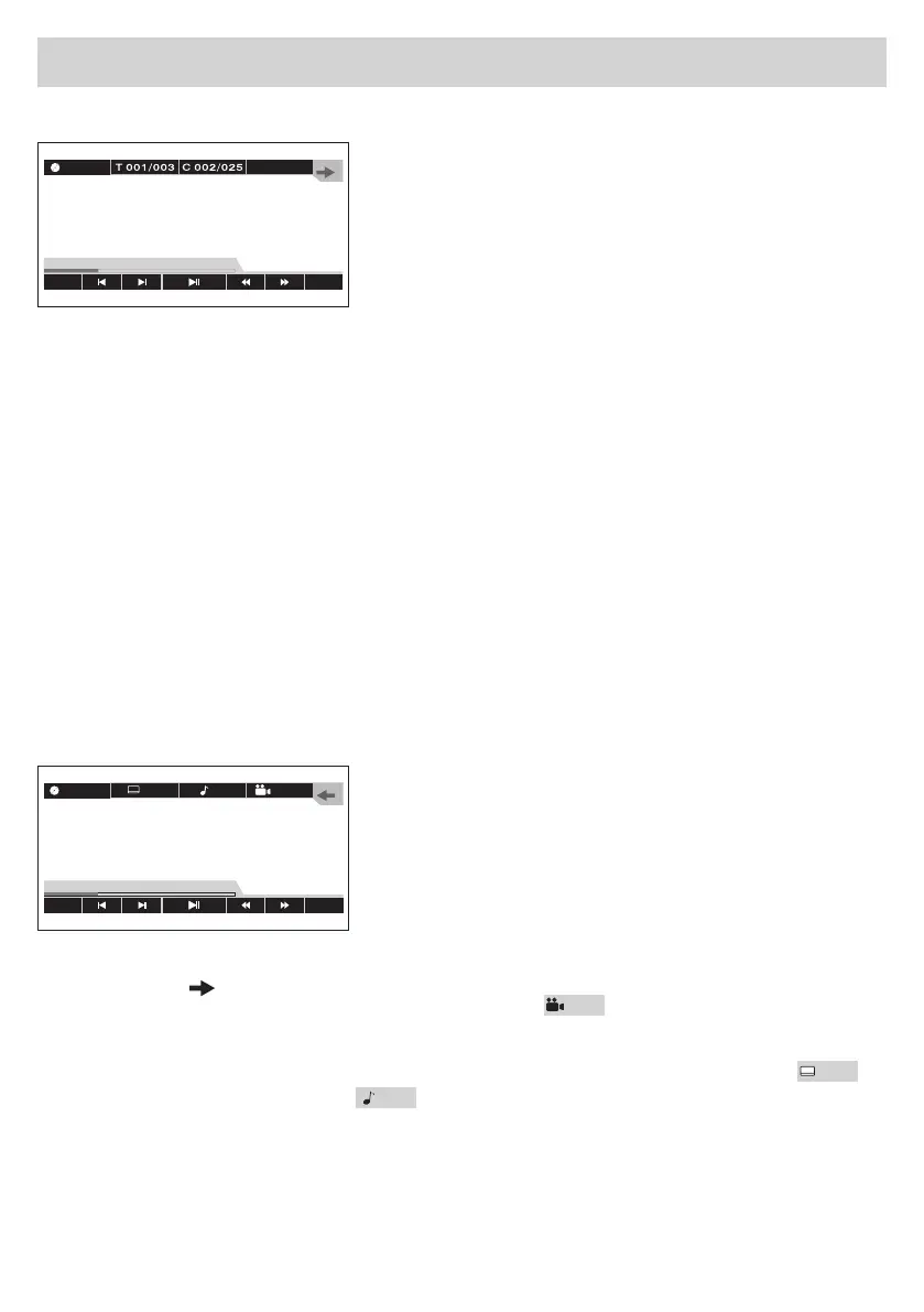 En modo DVD, para seleccionar el capitulo seleccionar el icono C002/005presenteenelmenúOSD.