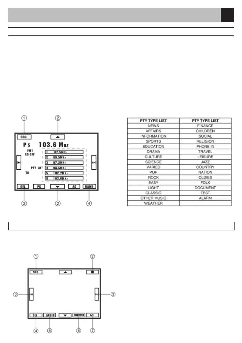 Tenir appuyée la touche T/P pendant plus de 2 secondes, pour allumer/éteindre PTY.