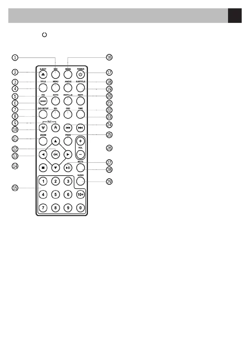 Taste drücken , um das Fernsteuerungsgerät ein- und auszuschalten.