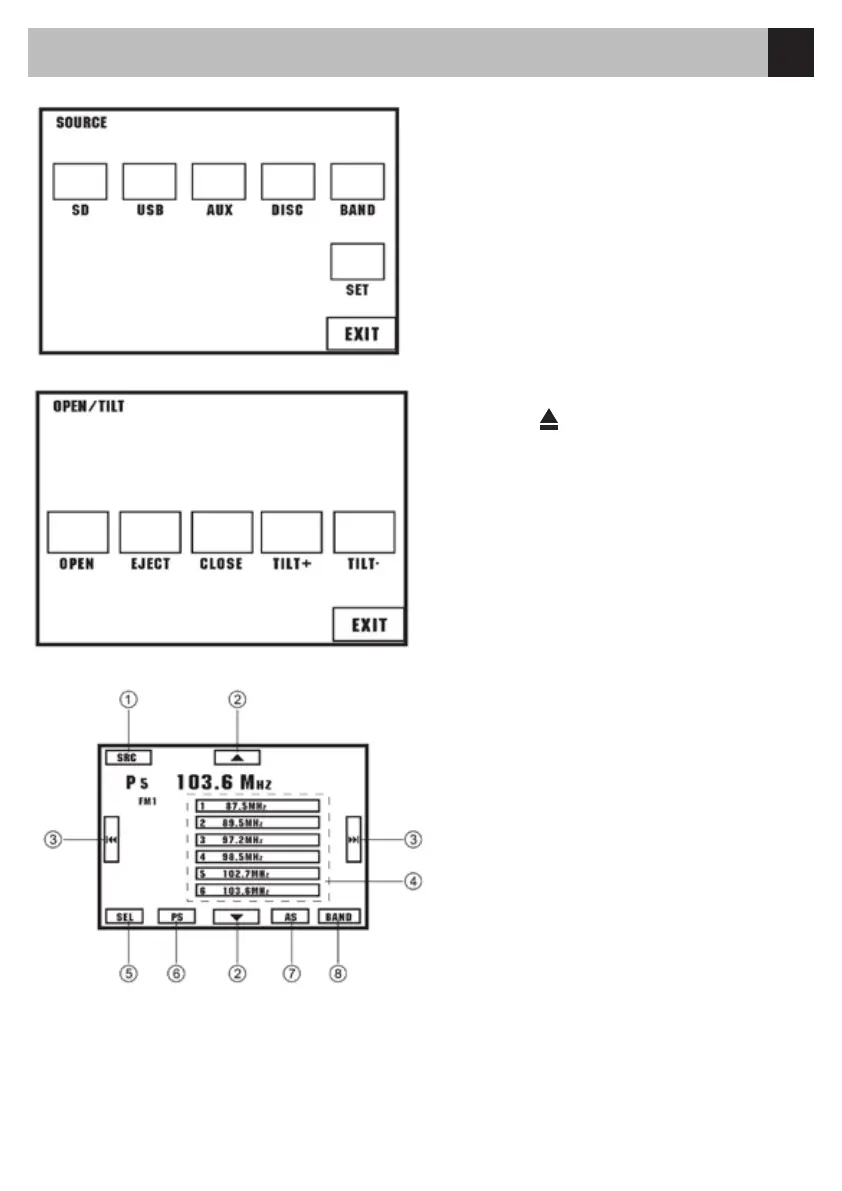 (Open/Eject/Close/Tilt+/Tilt-).