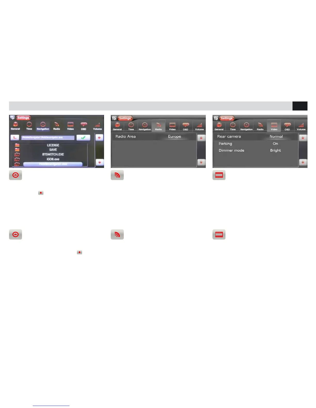 • Sélectionner Camera de Recul pour changer la