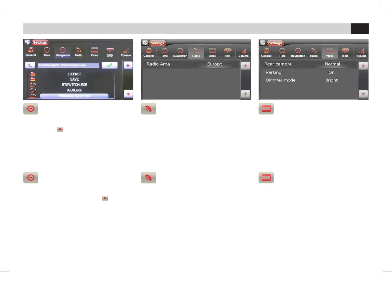 • Sélectionner Camera de Recul pour changer la