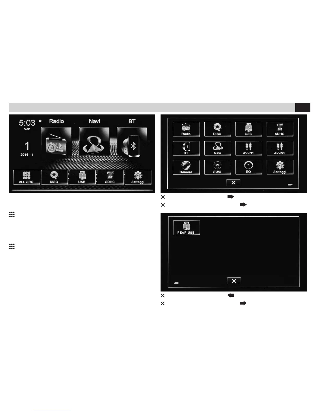 Avec les icônes sur l’écran on sélectionne la source ou la fonction