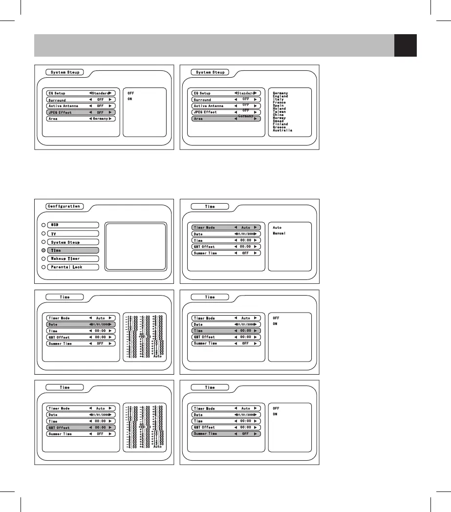 In the Configuration menu, enter Time and press UP/DOWN/LEFT/RIGHT to select the item and adjust the