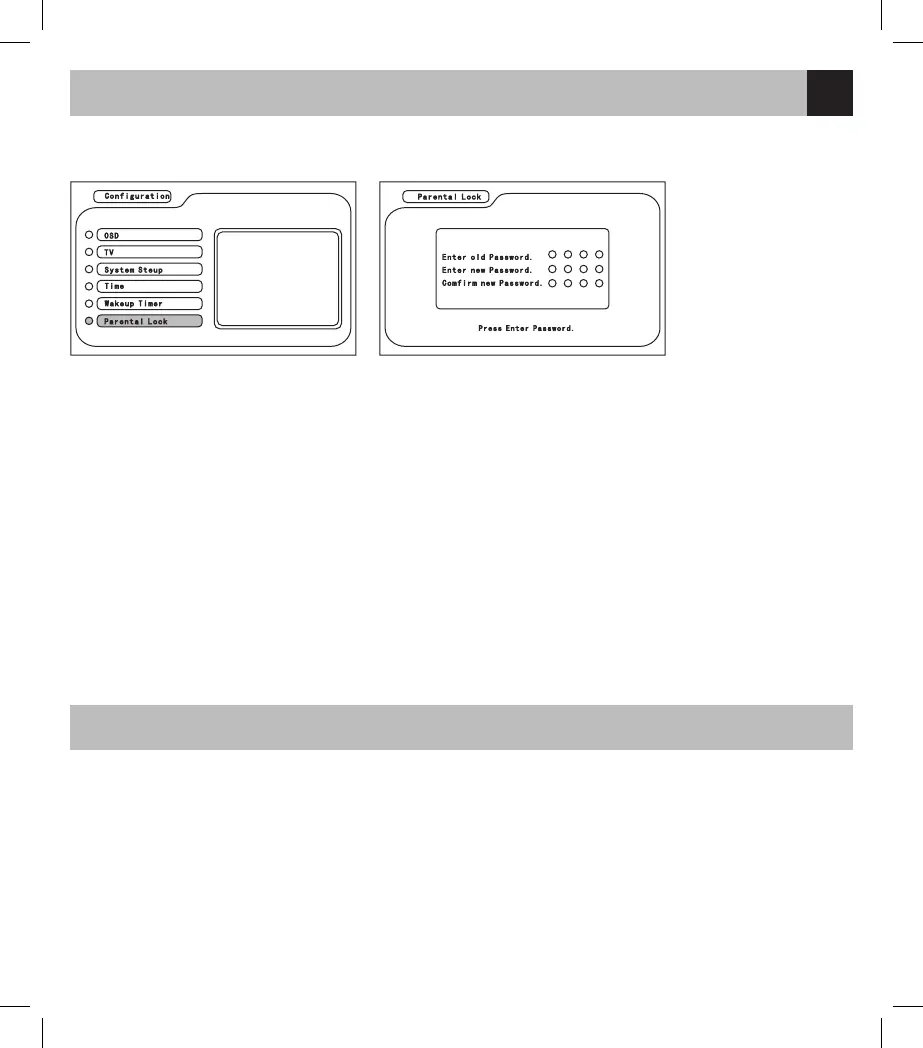 In the Configuration menu, enter Parental Lock and press UP/DOWN to move the pointer. Then input the