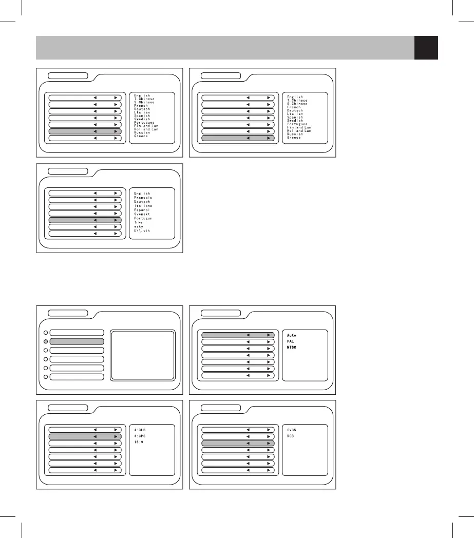Dans le Menu configuration, sélectionner TV et appuyer CH +/- pour choisir le champs d’action.