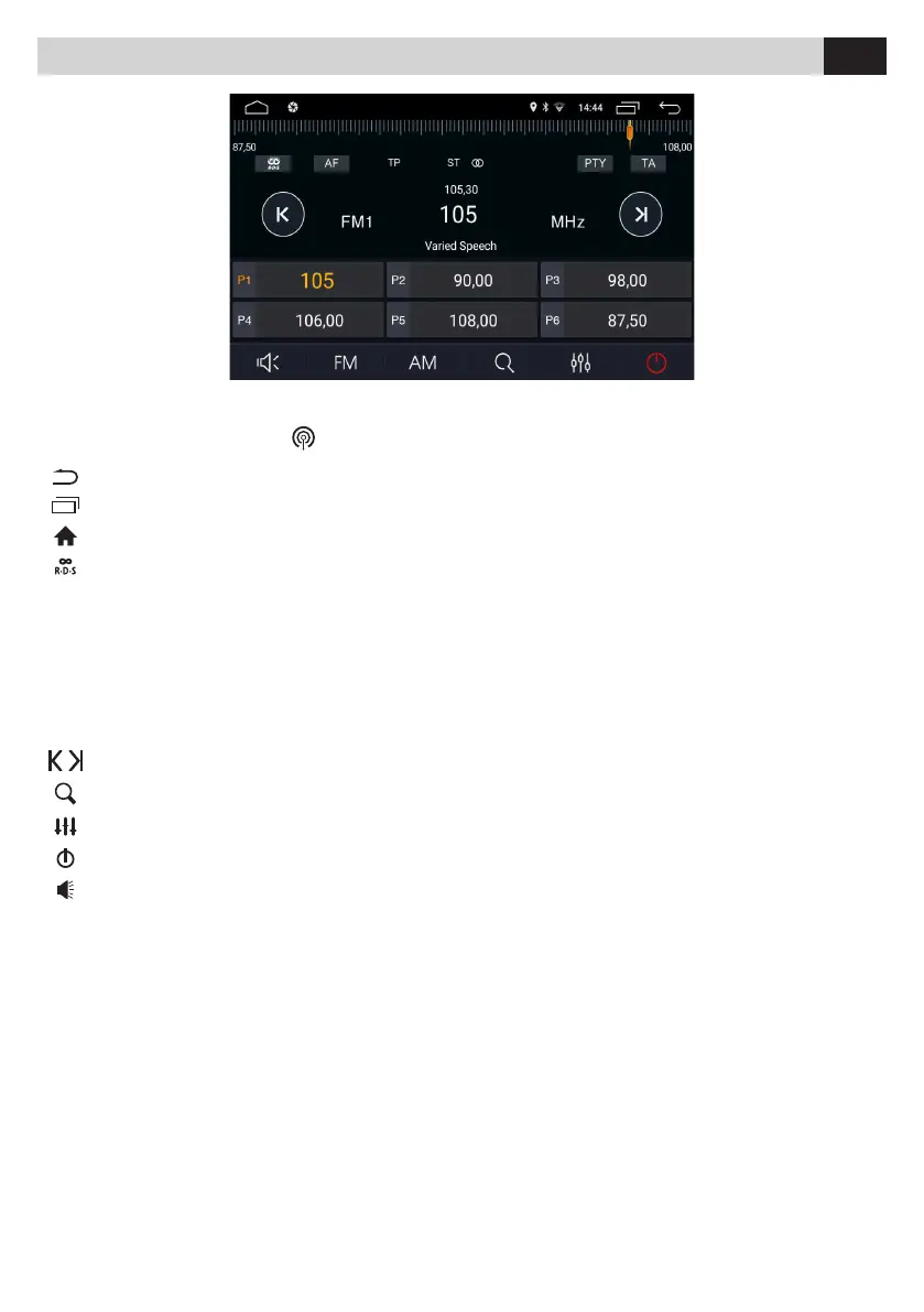 Pulsar en la pantalla táctil el icono del menú APP se accede a la función reproducción RADIO.