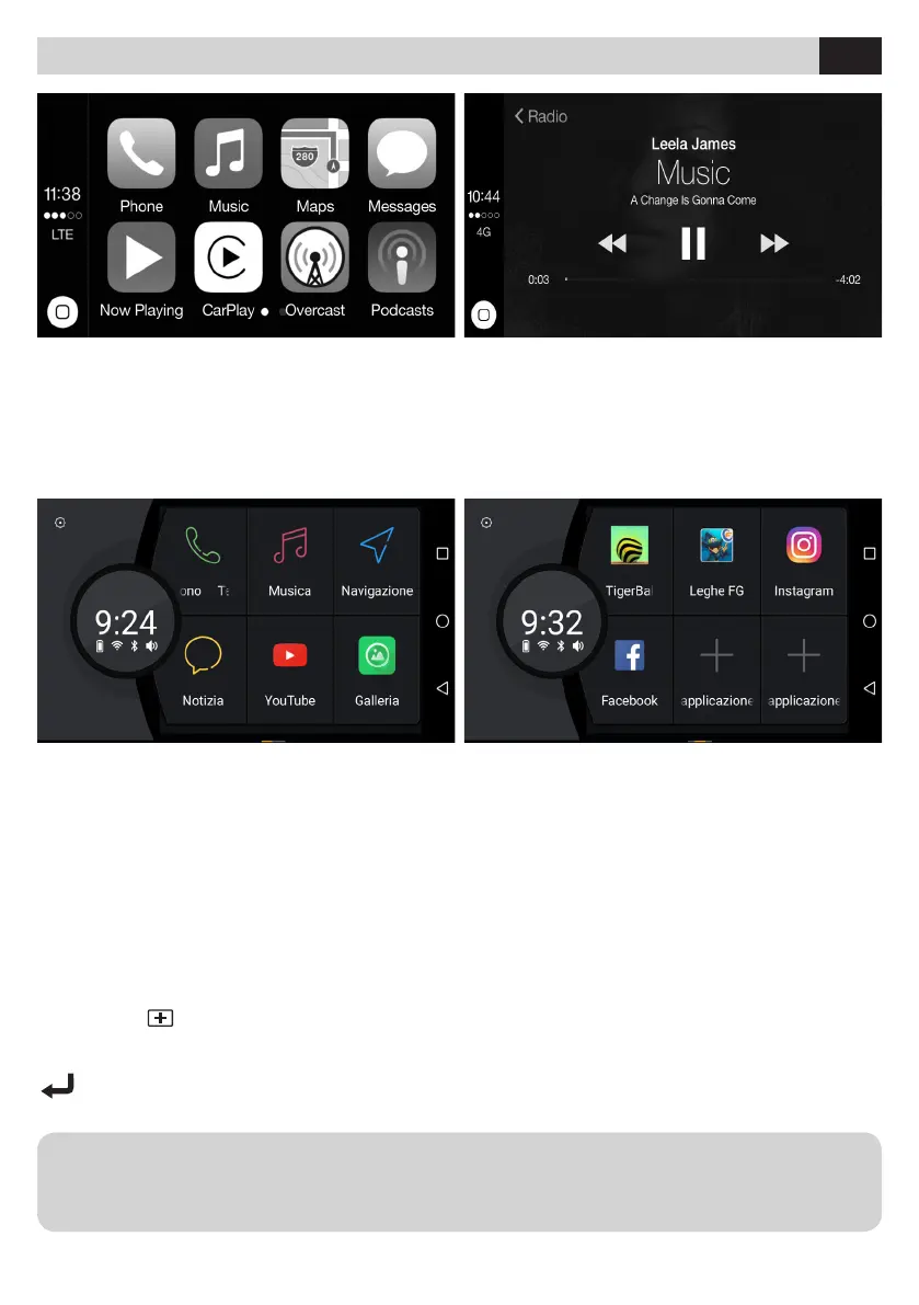 Cuando se inicia la función CARPLAY o ANDROID AUTO, se mostrarán solo las aplicaciones compatibles.