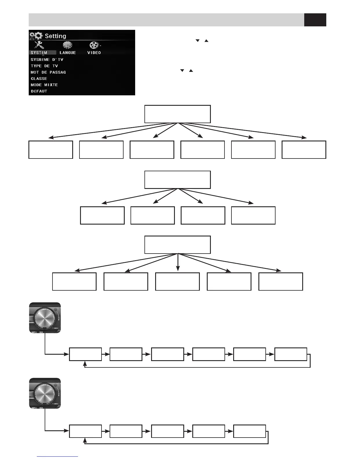 Appuyer brièvement sur le bouton, pour parcourir le menu et tourner le bouton pour modifier les paramètres.