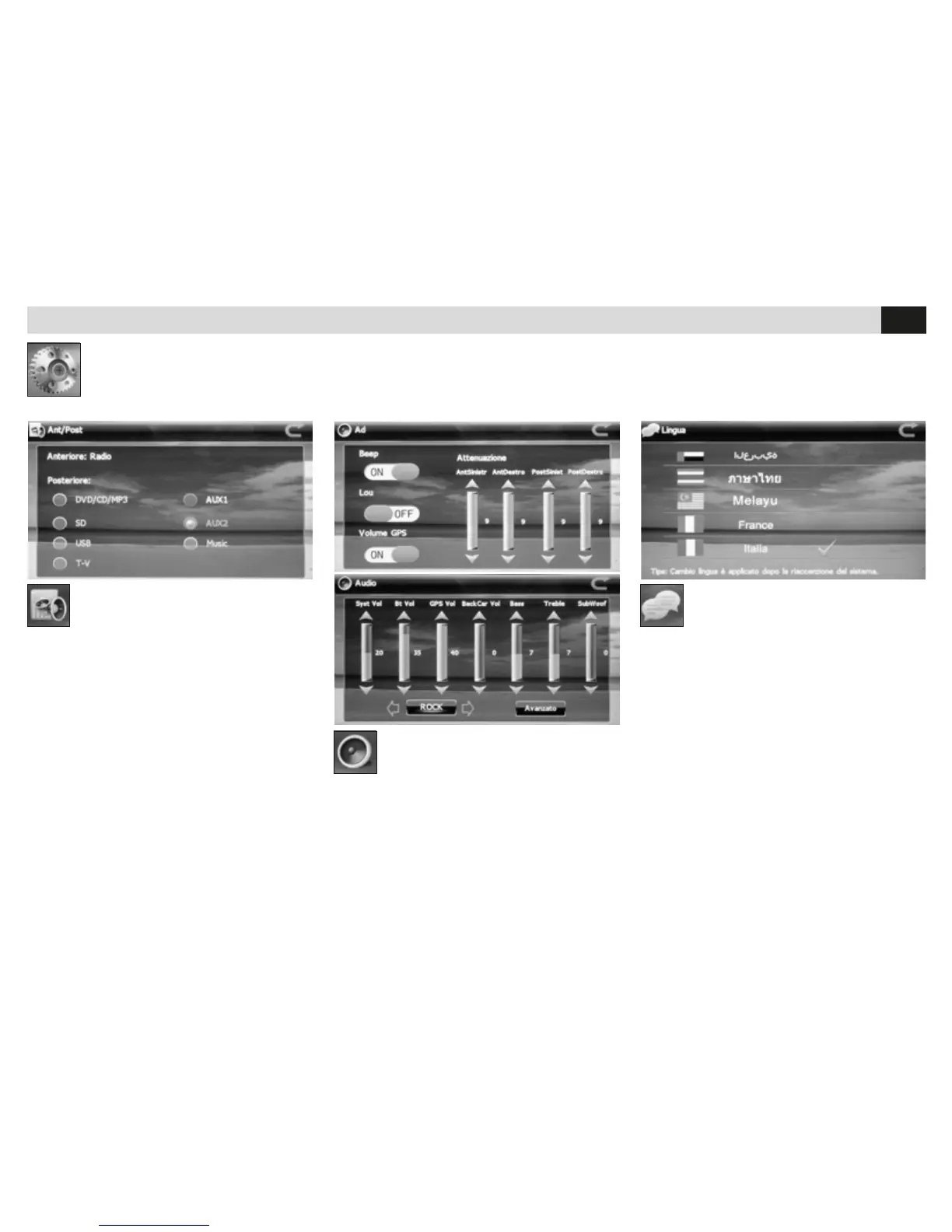 • Ajustes fader, loudness, sonido pantalla táctil.