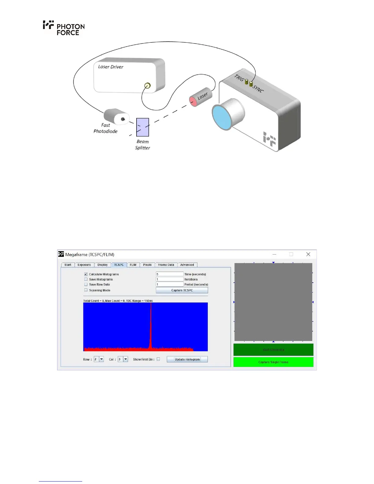 PF32 camera in slave TCSPC mode where the timing synchronisation signal is provided by an