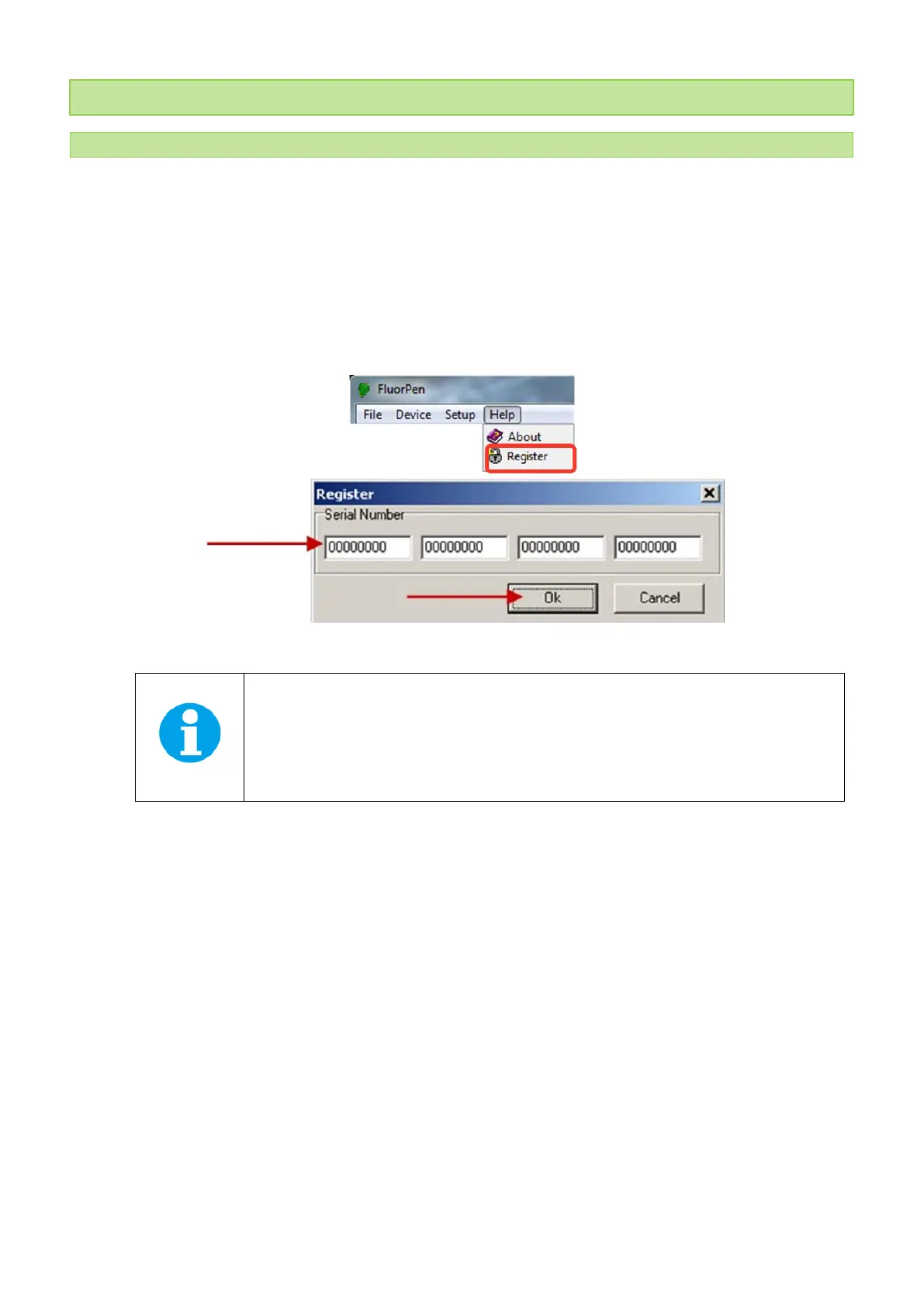 2. To connect and recognize your FluorPen device in the FluorPen software, proceed first with the registration of