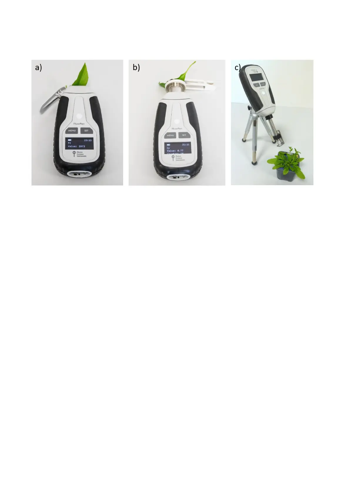 Fig. 1a) PAR-FluorPen FP 110/S. b) PAR-FluorPen FP 110/D. c) FluorPen FP 110/P.