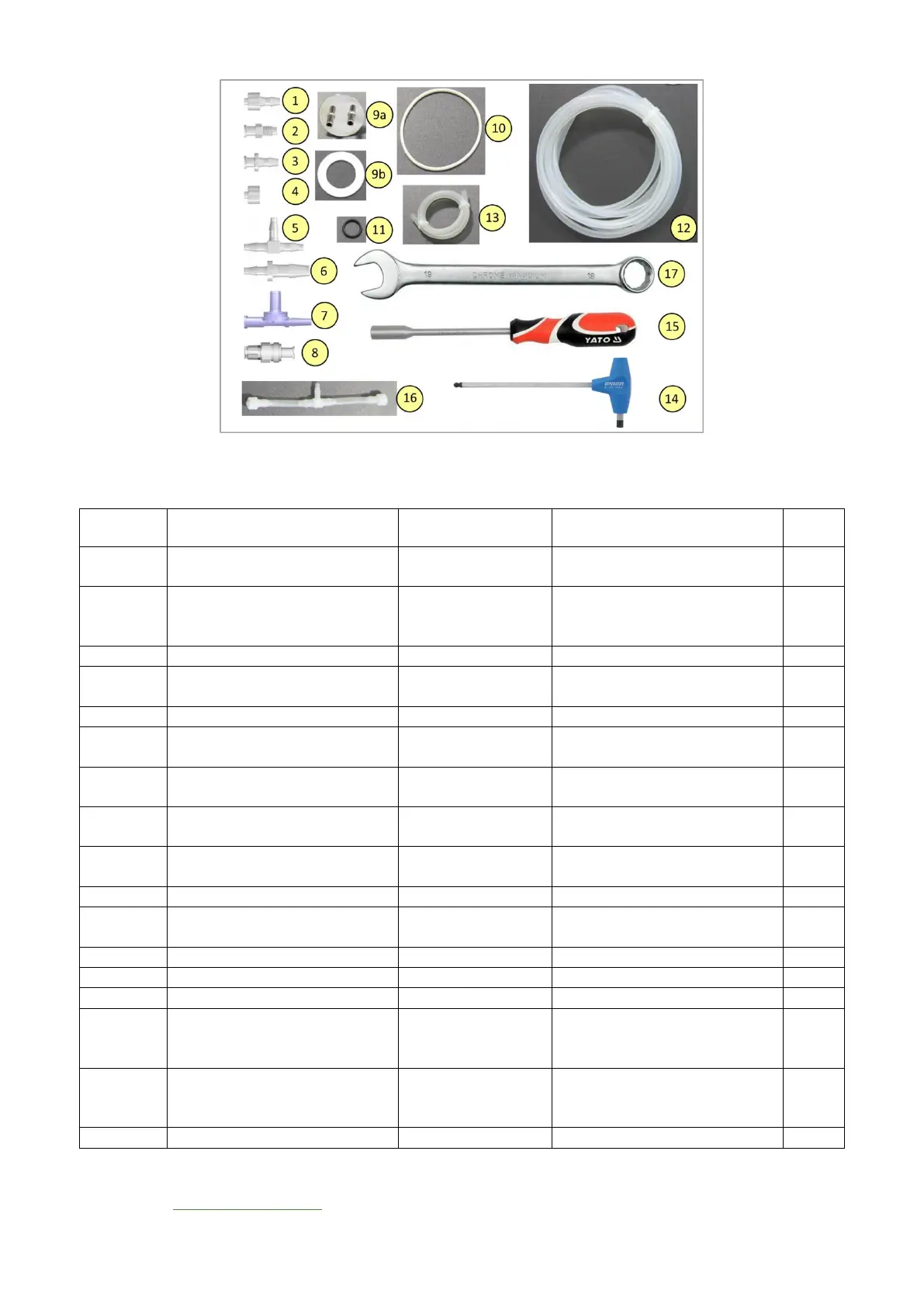 Fig. 5 Components of the Spare part kit. Numbers correspond to component number in Tab. 4.