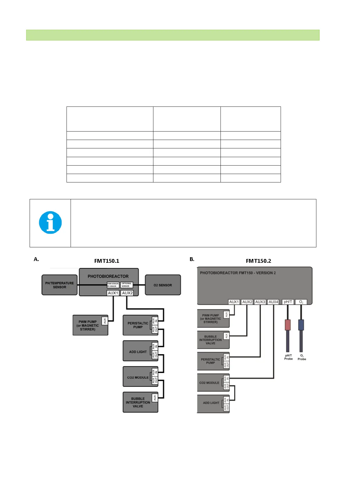 and PWM Pump, only one of the two devices can be connected to the PBR FMT150 at one time.