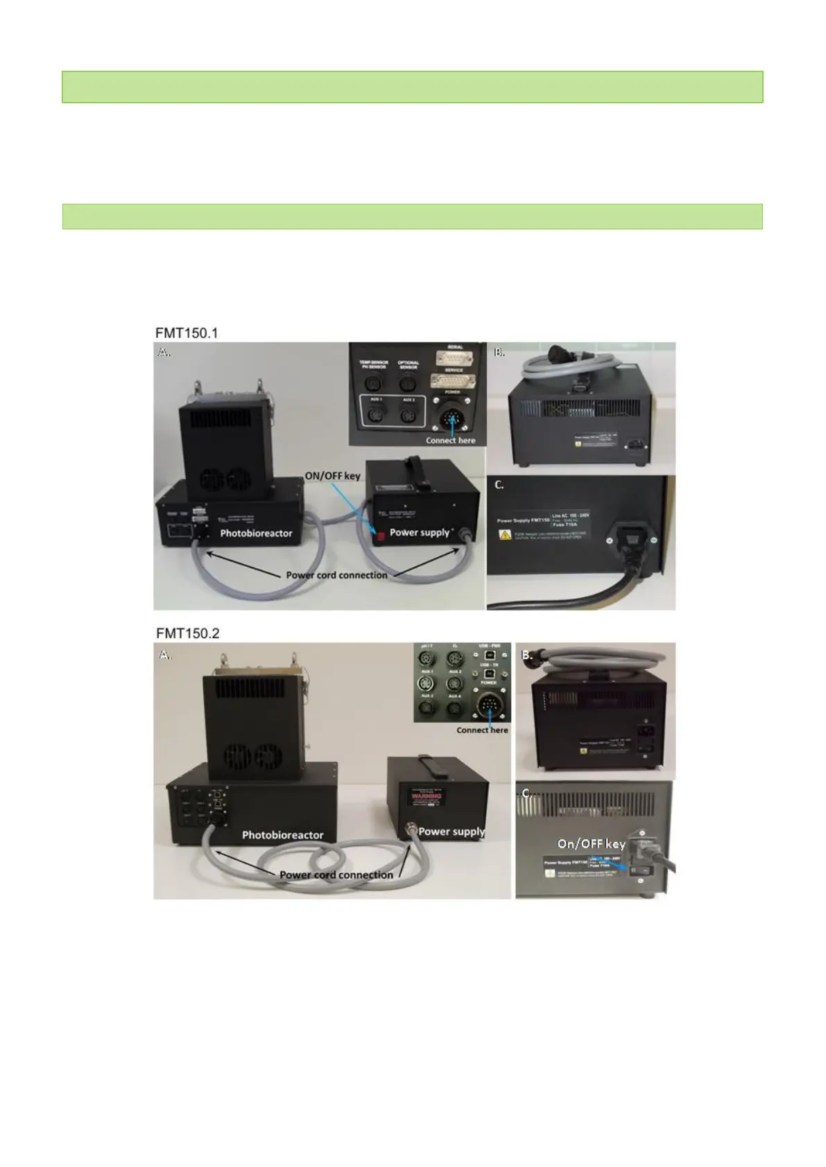 • Make sure that both the Photobioreactor and the power supply are switched OFF.