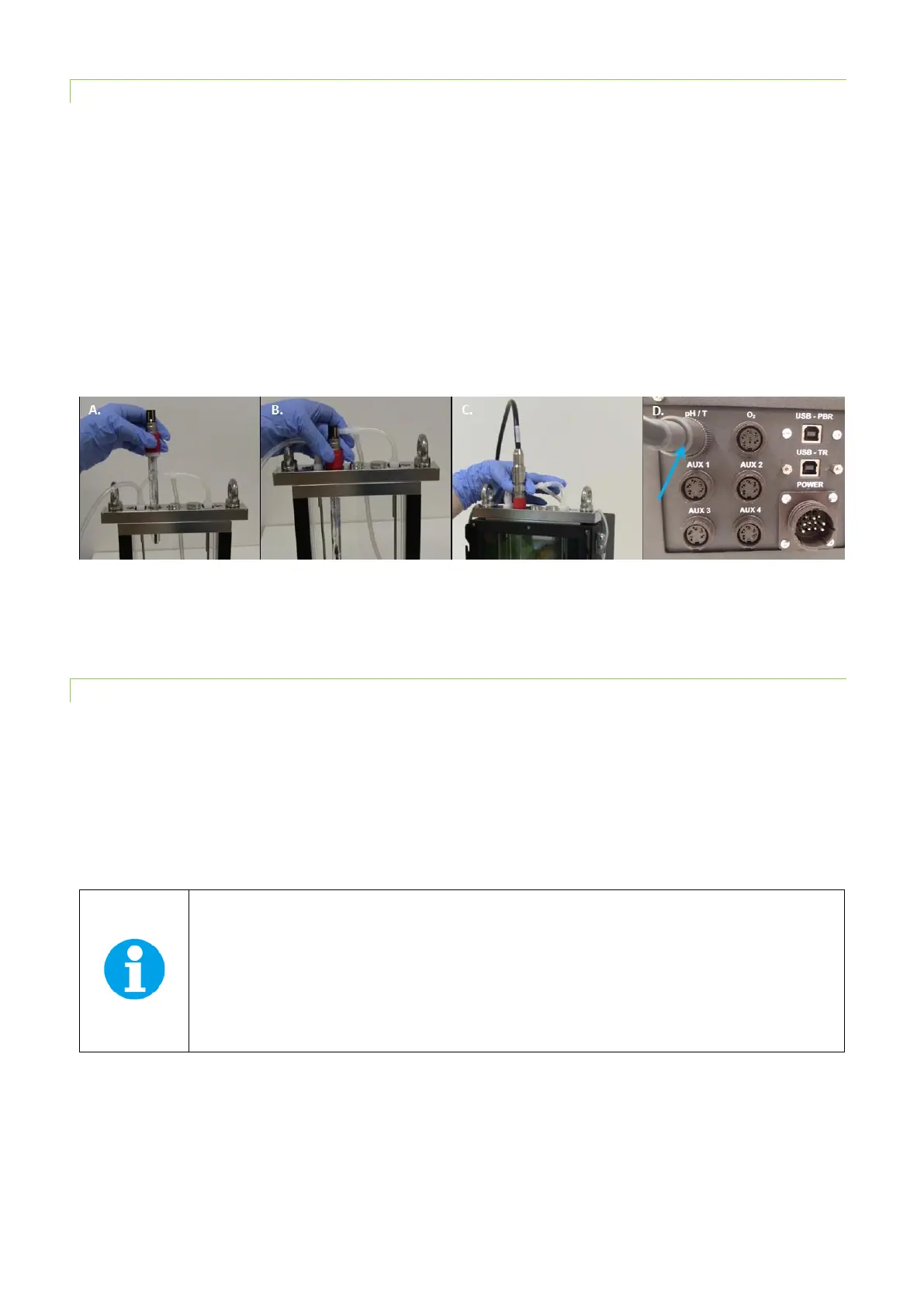 positioned probe. D) Attaching the cable to the rear side of the PBR.