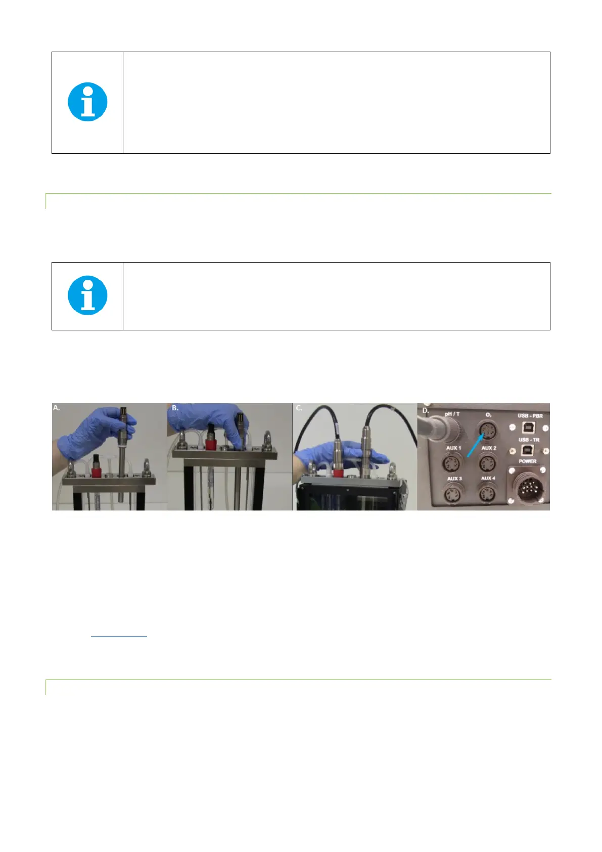 • Attach this cable to the connector at the back panel of the Photobioreactor. See the blue arrow in Fig. 23D for