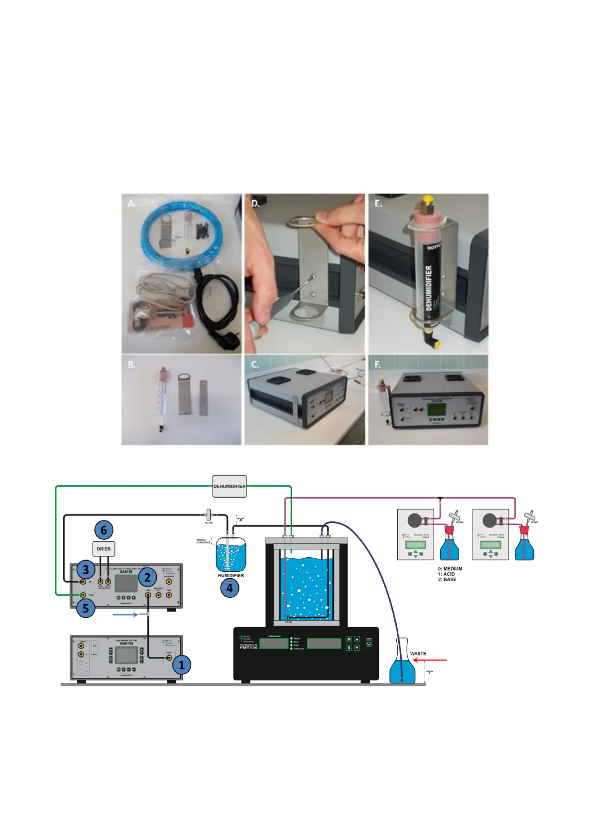 bringing the mixed air to humidifier bottle (4) and to the PBR FMT150. (5) Input for gas from the cultivation vessel to GAS 150. (6) Air