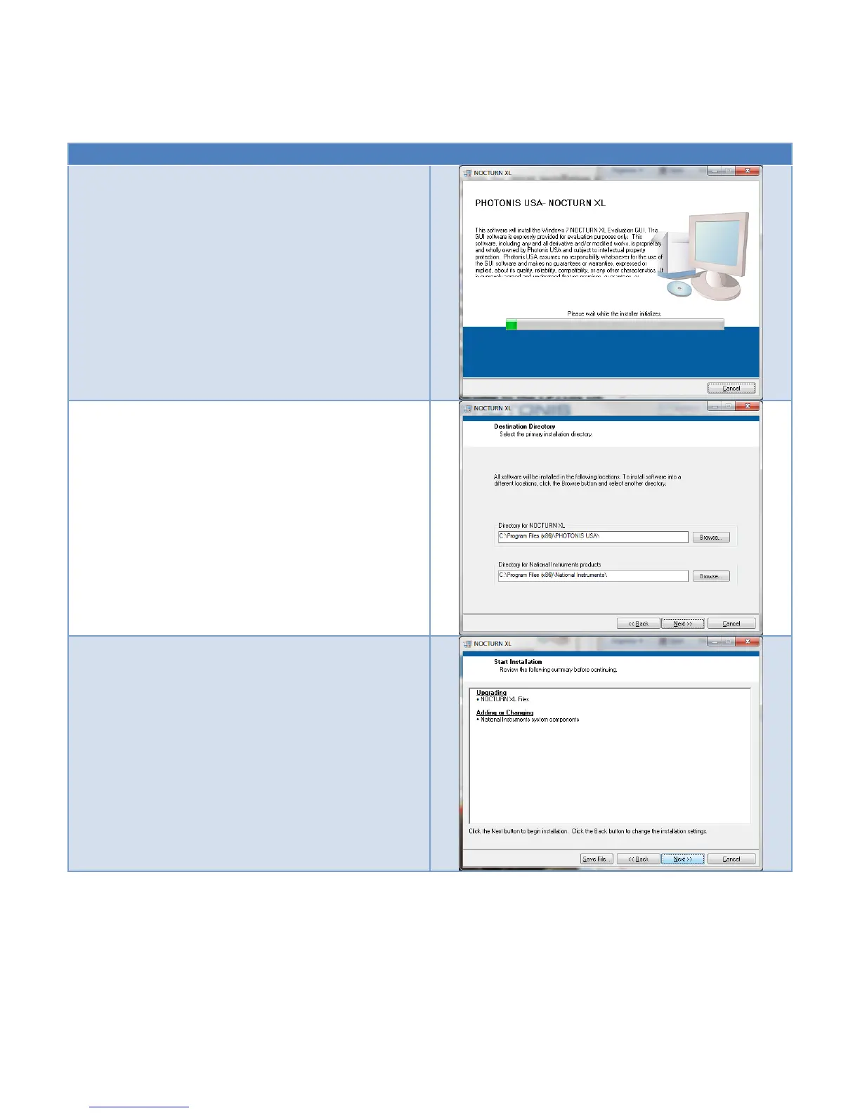 Table 17 Installation of the NOCTURN XL Windows Evaluation GUI
