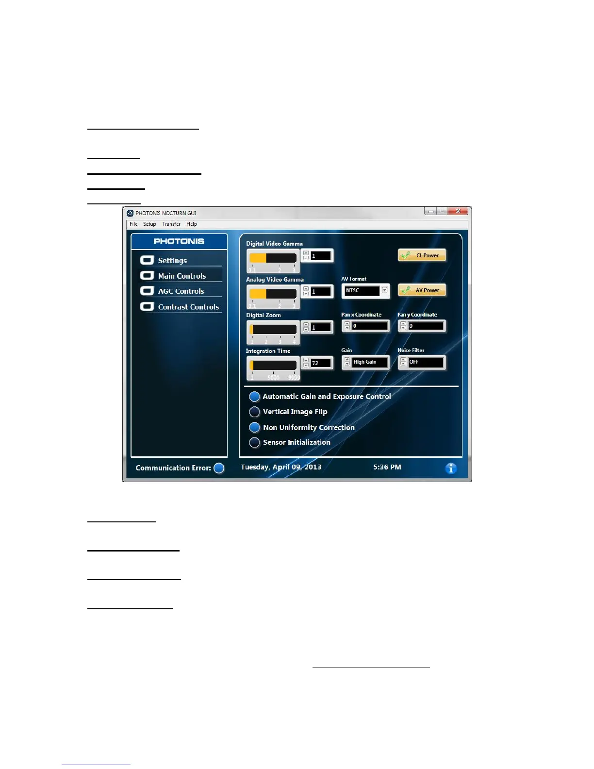 Digital Video Gamma- Adjusts the Gamma on the digital CameraLink® compatible video output