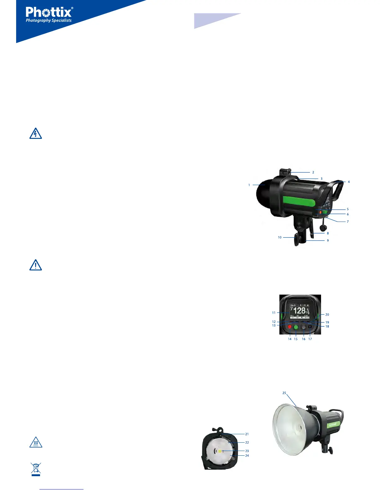 Note: Before using the Phottix Indra500 TTL Studio Light, please read this in-